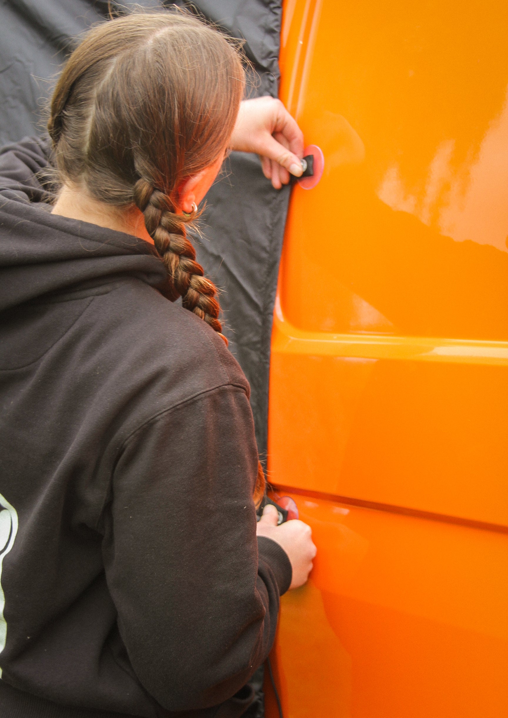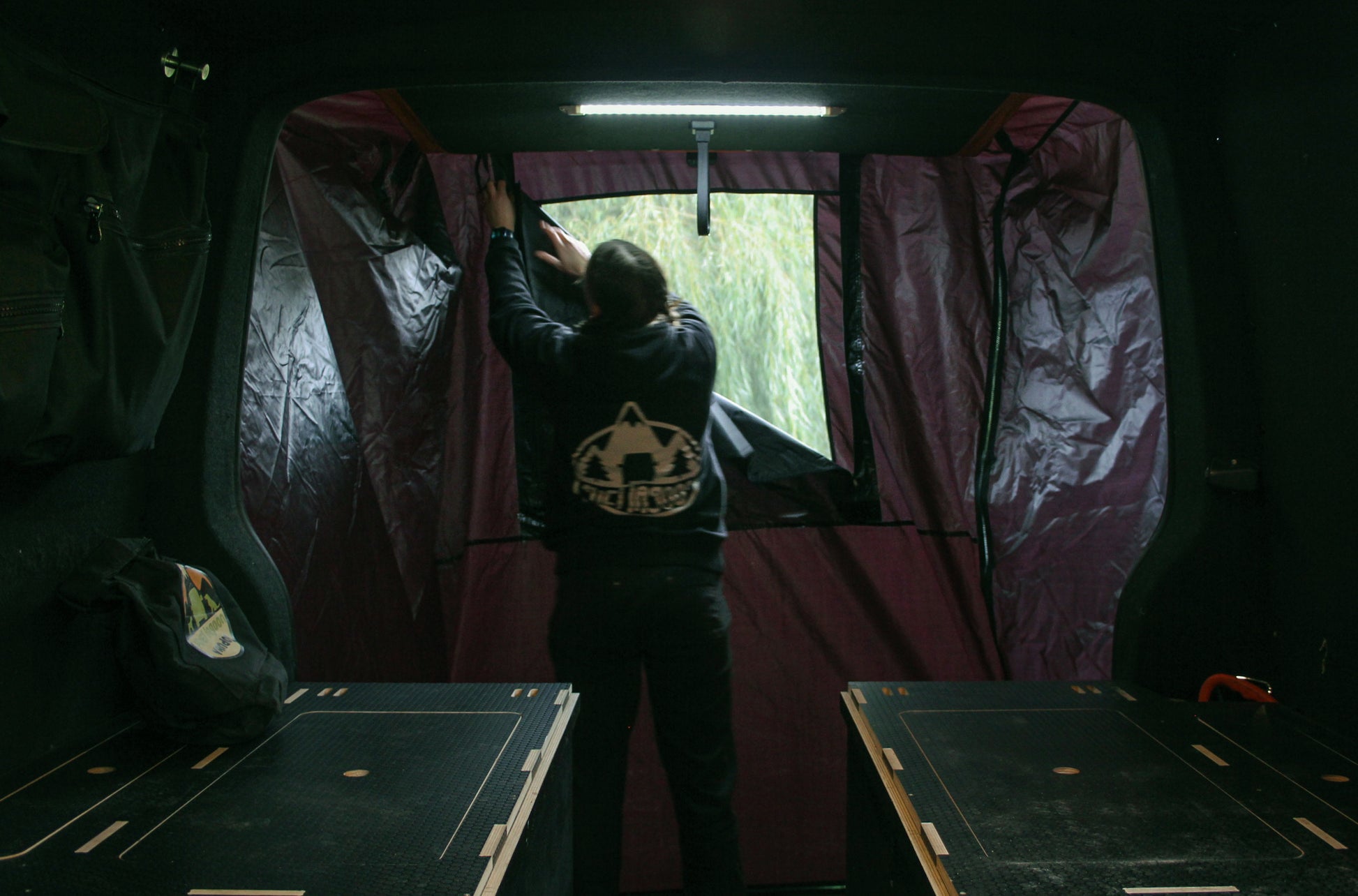 3) Tuck the skirt under the floor of van
