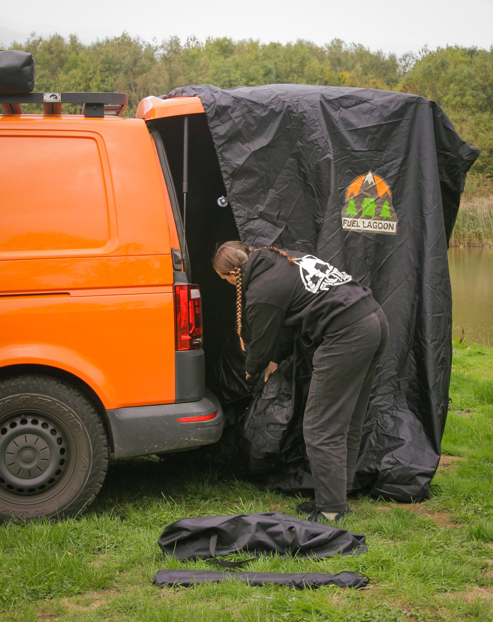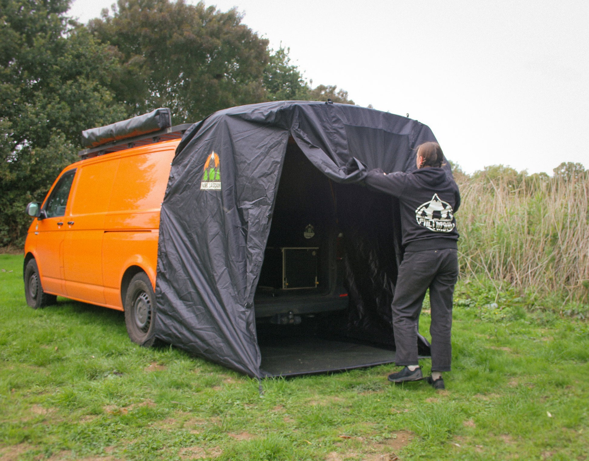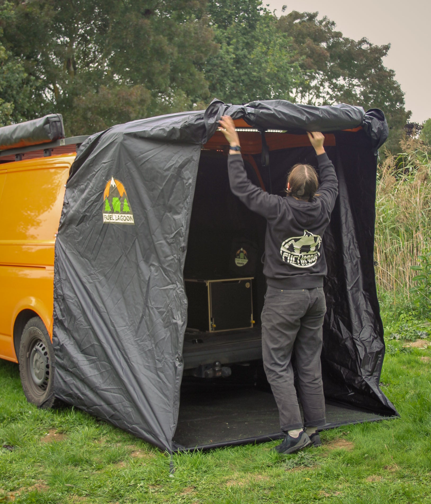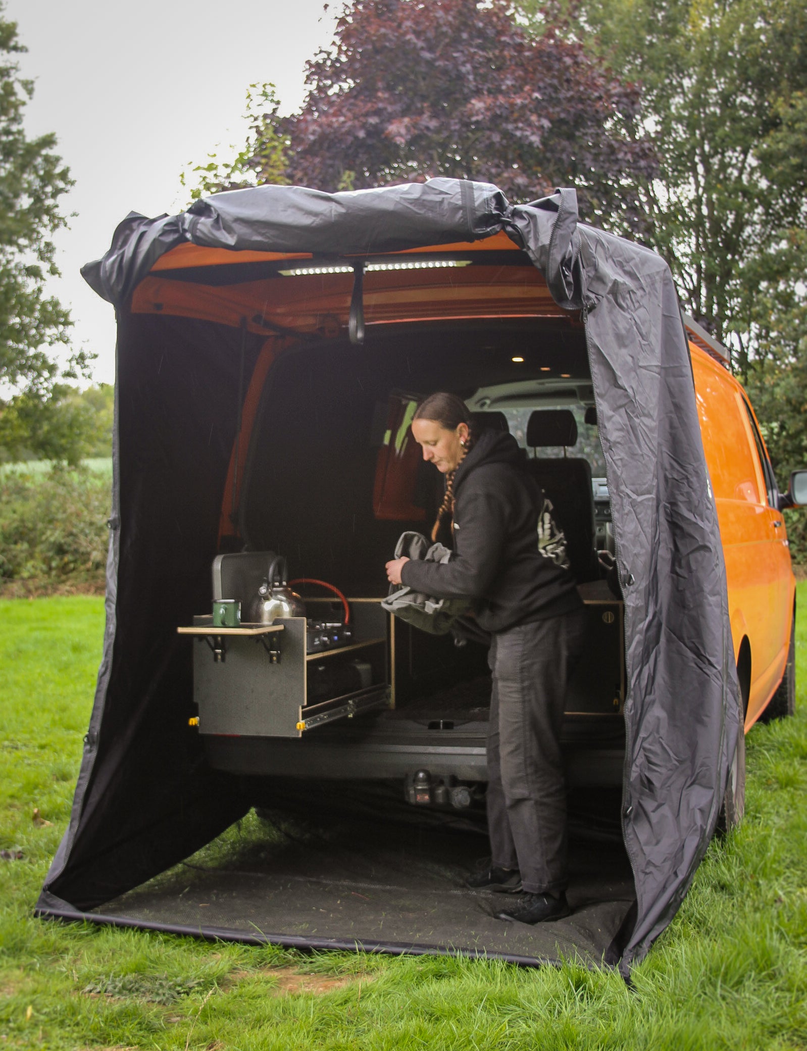 Perfect shelter for cooking out the back of your van!