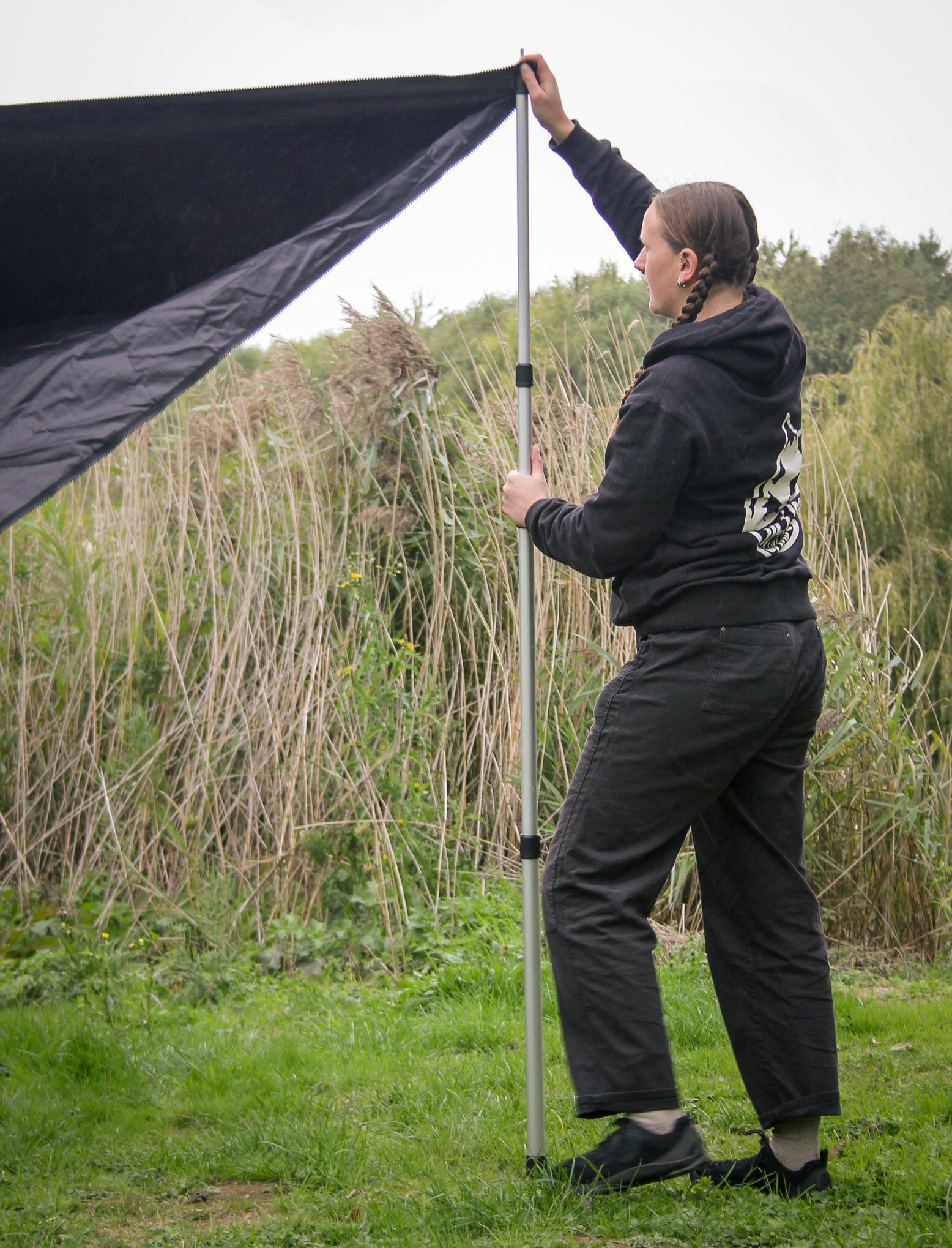 Option to open the door up with the telescopic poles and guy ropes. You can also secure the tent further using extra guy ropes in the added loops on the side of the tent.