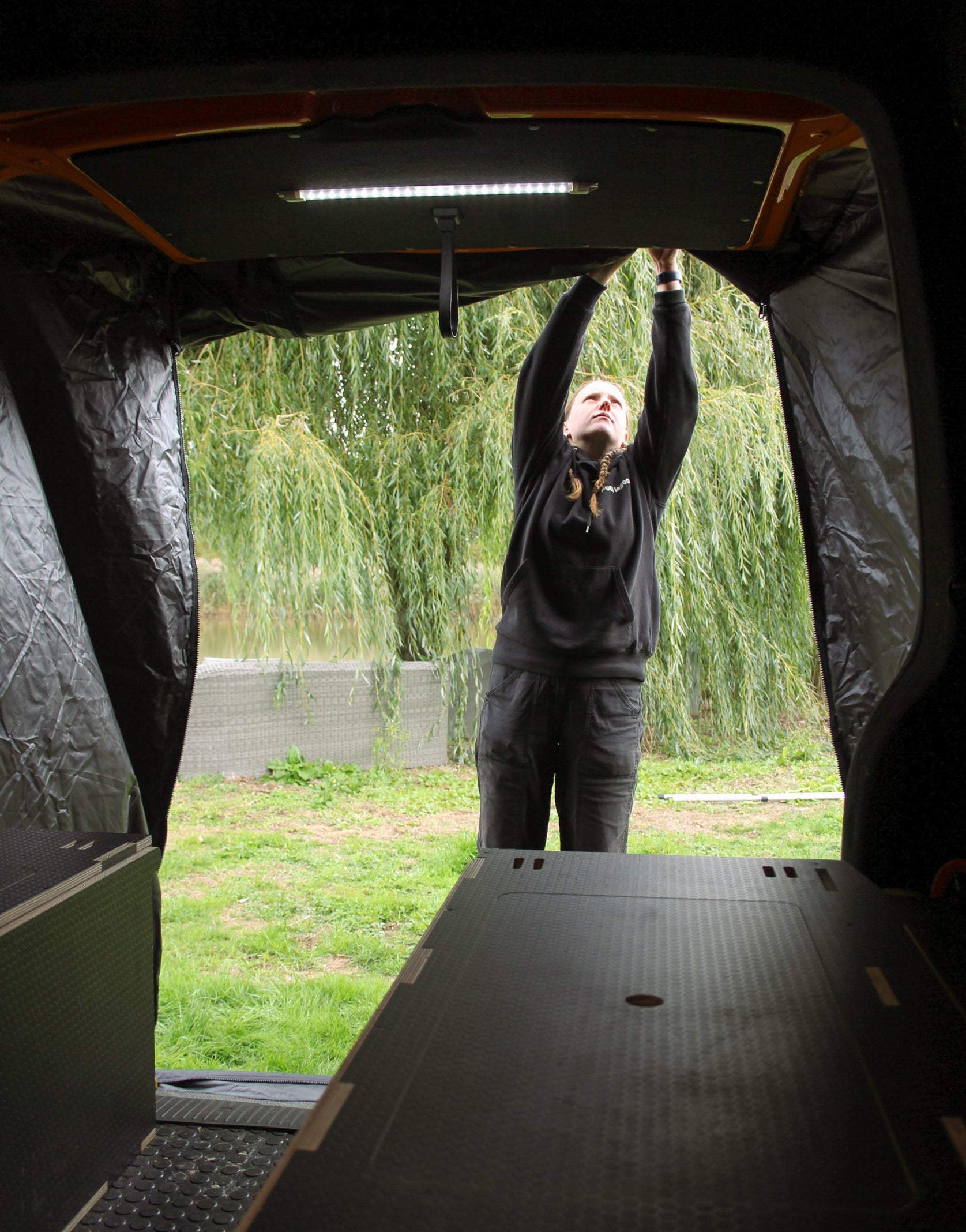 Add an extra living space and create a shelter that you can stand up in, for your campervan